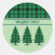 Pegatina Redonda Tartán Pine Trees verde negro y acogedor