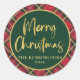 Pegatina Redonda Tartán Rojo Jugó Guión Dorado Feliz Navidad