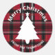 Pegatina Redonda Tartán Tartán Tintado Rojo Y Negro Con Texto