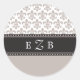 Pegatina Redonda Taupe Fleur de lis Boda Monograma Pegatina.