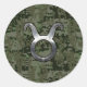 Pegatina Redonda Taurus Sign on Woodland Green Digital Camouflage