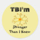 Aumento de la lesión cerebral y de la conciencia del TBI con pegatinas, botones, camisetas, tapones de bola y más. Este pegatina dice, "El TBI es más fuerte de lo que yo sabía", lo que bonito mucho describe a todos los que han experimentado una herida cerebral traumática o anójica.