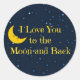 Cielo estrellado con un pegatina de luna creciente amarilla, "Te amo a la luna y atrás".