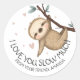 Un pegatina divertido para el El día de San Valentín que dice que te amo mucho LENTO y que está decorado con un lindo perezoso.