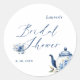 Pegatina Redonda Té de bodas de fiesta floral en acuarela azul
