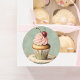 Pegatina Redonda Té de Cumpleaños de Cupcakes Rosados Franceses Vin