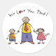 Pegatina Redonda Te queremos, papá, familia Personalizado, feliz dí