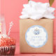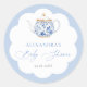 Pegatina Redonda Tea Brewing Blue Script Elegant Boy Baby Shower