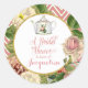 Pegatina Redonda Tea Fiesta Bridal Shower Chevron Stripes Rosa
