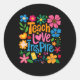 Pegatina Redonda Teach Love Inspire Boho Floral Retro Back To Schoo