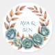 Pegatina Redonda Teal Roses and Copper Leaves Wedding