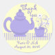 Pegatina Redonda Teapot y daisies púrpura