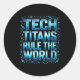 Pegatina Redonda Tech Titans Rule Funny Big Technology Satire Wer G