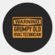 Pegatina Redonda Técnico de Hvac Antiguo y Grumpy de Aviso