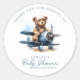 Pegatina Redonda Teddy Bear Airplane Watercolor Bebé Gracias