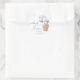 El globo de aire caliente del oso de Teddy podemos esperar con ansiedad el pegatina redondo clásico de la ducha de bebé azul.