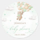 ¡Oso de peluche con globos verdes Pegatina redondo Baby Shower clásico!