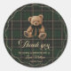 Pegatina Redonda Teddy Bear Green Tartan Baby Shower
