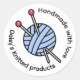 Balón azul de lana con dos agujas de punto con extremos rojos pegando a través de ella. Plantillas de texto a ambos lados del hilo para personalizar estos pegatinas. Ideal para los productos de punto hechos a mano.