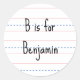 Agrega un toque de encanto personalizado a los accesorios escolares de tu hijo con nuestras pegatinas personalizadas con tema escolar. Con un fondo único de cuaderno inglés, este diseño muestra una página de cuaderno con una carta escrita a mano y el nombre de un niño, como "B es por Benjamin". Perfecto para niños y niñas, la letra inicial y el nombre se pueden personalizar completamente para hacer que esta pegatina del nombre del niño sea única. Ideal para el regreso a clases, cumpleaños o cualquier ocasión especial, esta etiqueta de nombre para niños combina creatividad e individualidad de una manera divertida y elegante. ¡Deja que tu hijo use orgullosamente su nombre e inicial con este encantador diseño de pegatina personalizada!