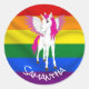 Pegatina Redonda Tema Fiesta de Unicornio arcoiris