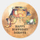 Pegatina Redonda Tema occidental personalizado Stagecoach Cumpleaño
