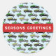 Pegatina Redonda Temporada de feriado de navidades con camionetas P