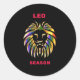 Celebrando el cartel de zodiaco para Leo con una imagen de un león arco iris y el texto Temporada de León impreso en rojo.