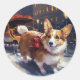 Pegatina Redonda Temporada festiva de los Navidades Corgi