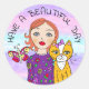 Pegatina Redonda Ten un bello día, un caprichoso Chica de arte folc