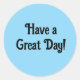 Tener un gran día stickers. Lindos stickers para poner en tus sobres para desearle a alguien un buen día. Fondo azul con texto burbujeante negro.
