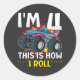 Tengo 4 años y así es como rollo Monster Truck 4th Birthday Boys Familia Coincidencia Diseño Regalo Clásico Ronda Pegatina Colección Clásica.