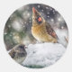 Una cardenal hembra en la nieve parece estar vigilando al otro pájaro.