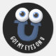Pegatina Redonda Tengo Mis Ojos En U Funny Alphabet Pun Dark BG