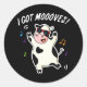 Pegatina Redonda Tengo Moooves Divertidas bailando Cow Pun Dark BG