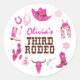 Pegatina Redonda Tercer cumpleaños de Rodeo Rosa Occidental Cowboy