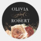Pegatina Redonda Terracotta Boda Moderno Floral Boho Negro