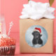 Pegatina Redonda Terranova de perros en gorra rojo de Santa Claus