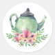 Pegatina Redonda Tetera de acuarela con ramo floral