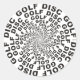Disfruta de este diseño gráfico basado en texto de las palabras "Disk Golf" que gira alrededor es un patrón concéntrico, circular...