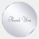 Texto de agradecimiento Plantilla moderna metálica plateada Pegatina redonda clásica elegante.