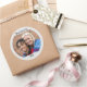 Su foto única y dos líneas de texto personalizado resaltan estos pegatinas redondos personalizados.