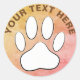Versión blanca de la huella de la pata en el fondo del papel de edad. pegatinas personalizados en decoración y etiquetado. El texto se puede editar para la personalización.