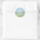 Thank You Classic Elegant Custom Golf Theme Wedding Round Sticker with watercolor golf course in the background. Names of the bride and groom along with the date of the wedding. If you need any design assistance, just send a message or an email to charmdesignstudio@rcn.com and we'll be delighted to assist.