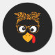 Pegatina Redonda Thanksgiving Turkey Face Leopard Print Gles Autumn