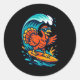 Pegatina Redonda Thanksgiving Turkey Surfer Surfing
