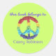 Pegatina Redonda "This book belongs to" peace sign bookplate