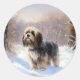Pegatina Redonda Tibetano aterrador deja que nieva a Navidades