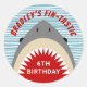 Pegatina Redonda Tiburón muerde cualquier fiesta de cumpleaños de l