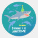 Pegatina Redonda Tiburón sonriente bajo el mar niño Partido Cumplea